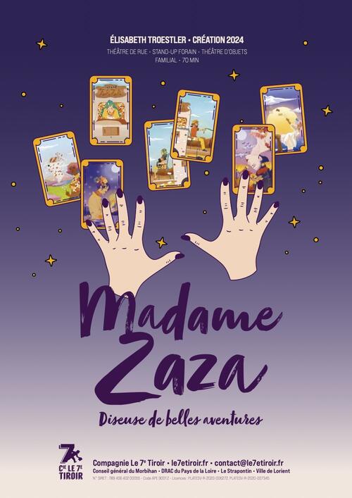 Bienvenue dans l’univers fantasque et bouleversant de Madame Zaza, cartomancienne exubérante, tendre et un brin impertinente, qui tire les cartes comme on ouvre les cœurs.